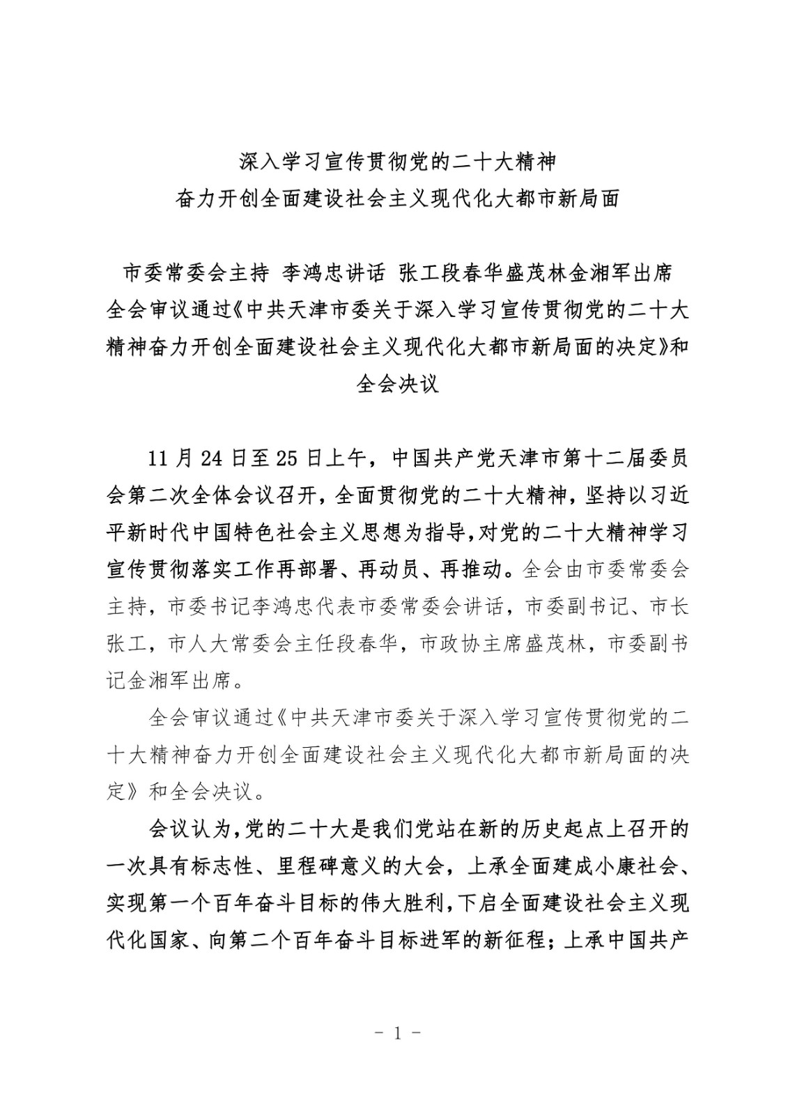 深入学习宣传贯彻党的二十大精神奋力开创全面建设社会主义现代化大都市新局面