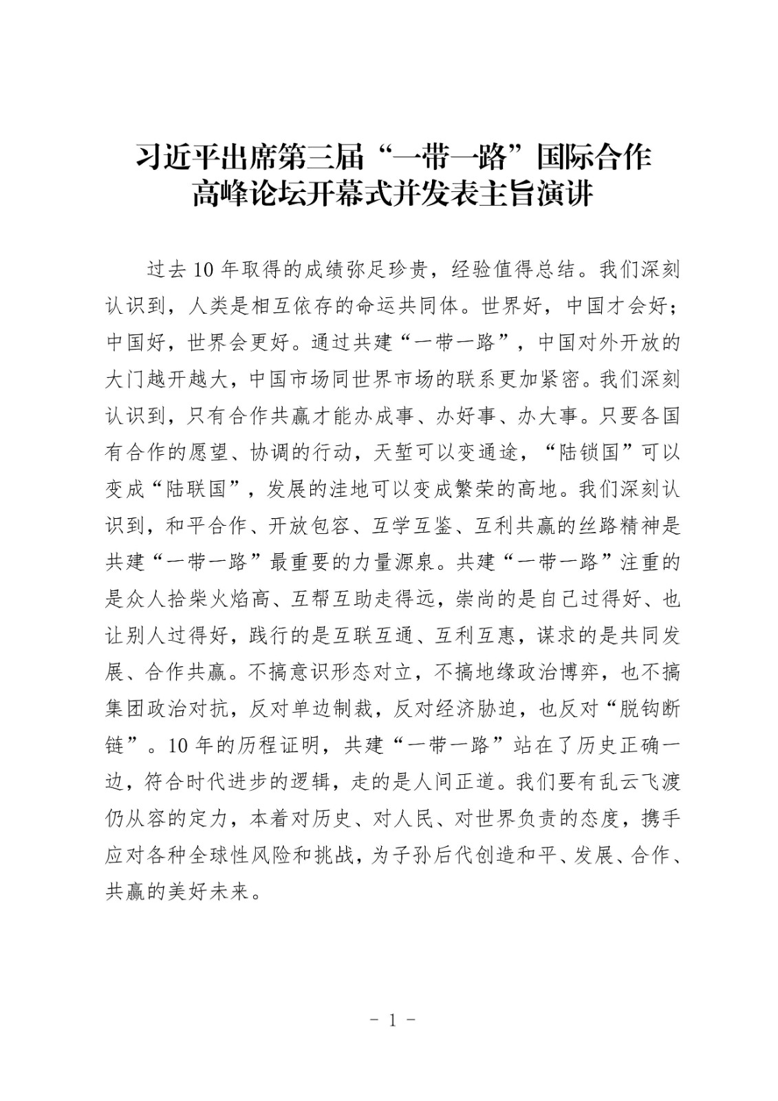 习近平出席第三届“一带一路”国际合作高峰论坛开幕式并发表主旨演讲